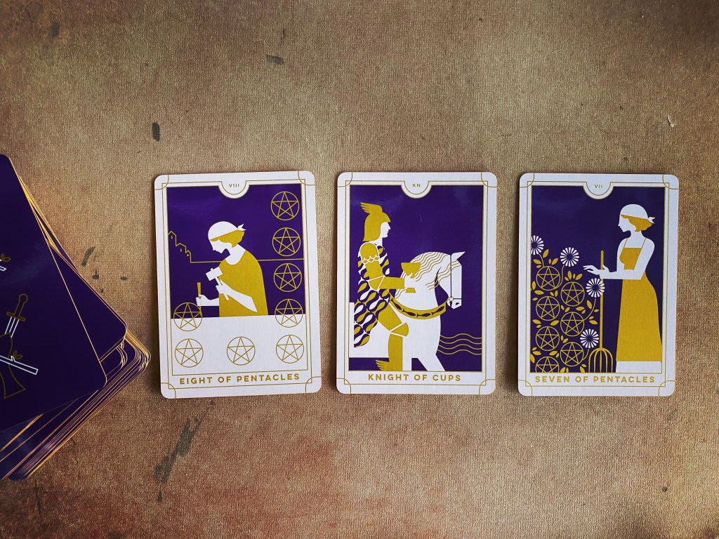 If you’ve been following me on Instagram, you know that I’ve been working on a book series in which a magical tarot card features pretty heavily. Being fairly new to tarot (although I’ve read a lot of books about witches, witchcraft, and fortune-telling), I’ve started using three card spreads to help guide character motivations and sticky plot situations. Some of them have ended up in the manuscript, as Cate is also looking for guidance.