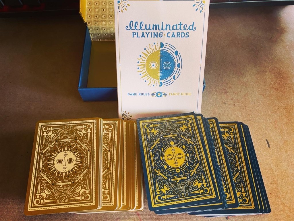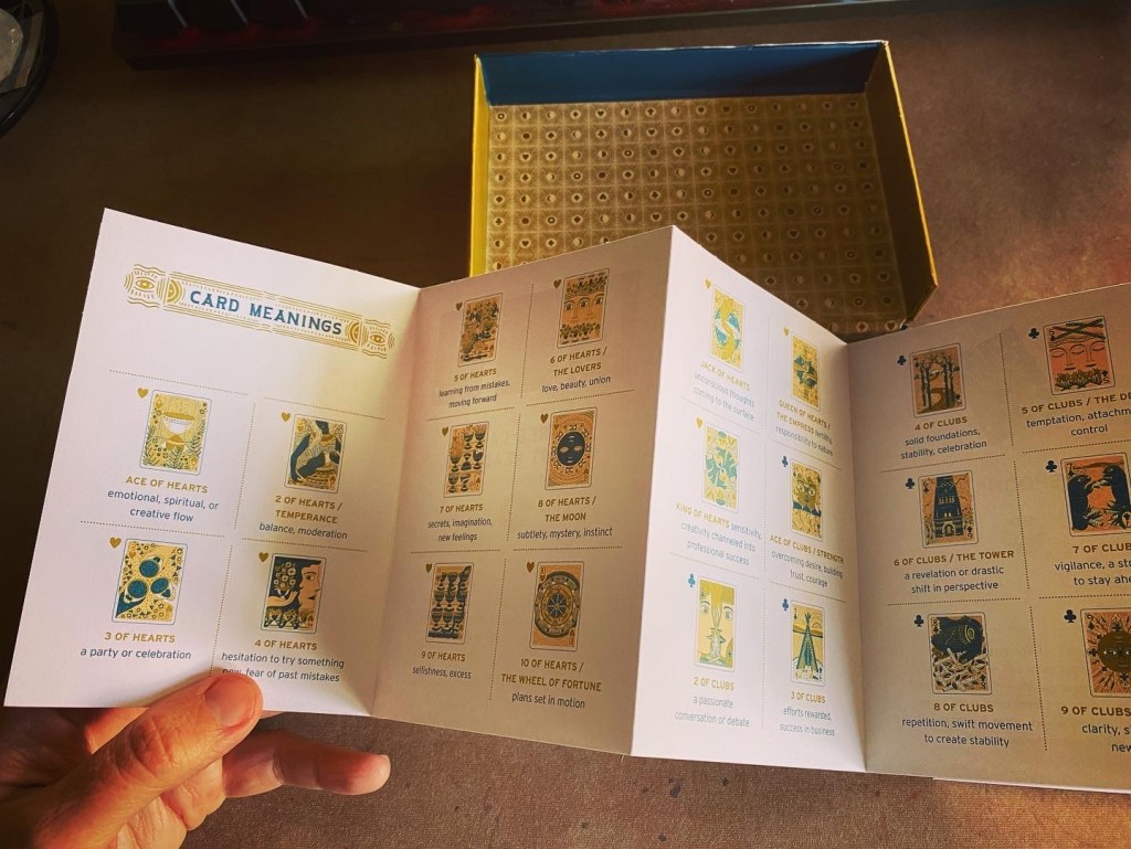 The #illuminatedplayingcards box has two decks of playing cards, one designed around the sun, one designed around the moon. The instructions tell you how to play regular games (like Go Fish), as well as how to do a reading. Since they are playing cards, you don’t get the major arcana, but all of the minor arcana are represented. I’ve been looking at how closeted modern (and historical) witches would use regular cards (it’s going to come into play in one of the Cate sequels), so this is a cool overlap, and they are so pretty.