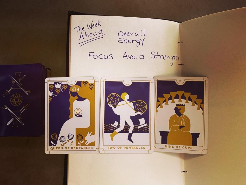 This week I pulled a three-card spread on Monday, and I’m tracking it across the week.