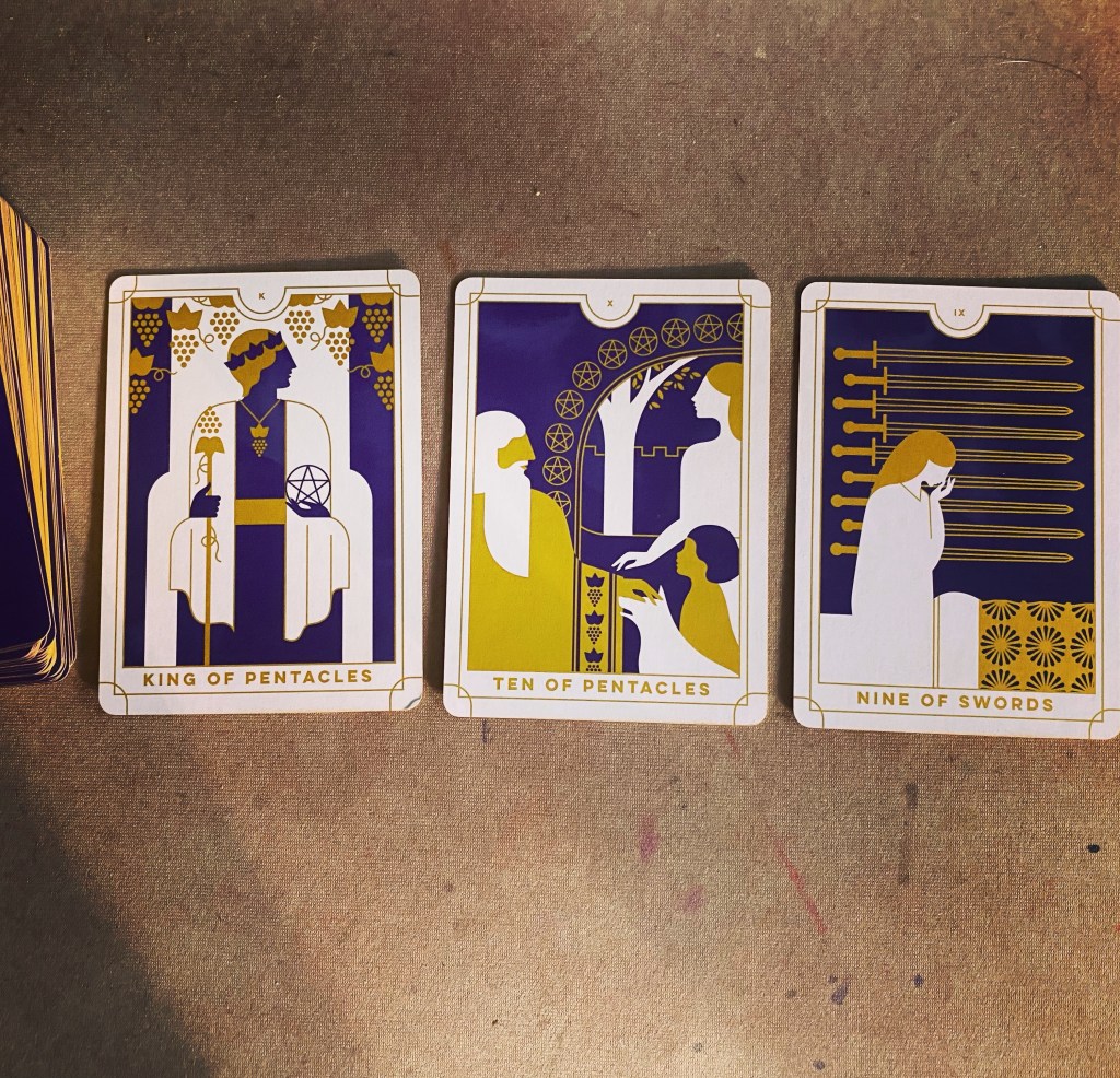 That nine of swords is still stalking me, and it’s anyone’s guess what’s going to cause the next bit of stress: last night’s heat stroke, other random causes for hypochondria, the ongoing approaching apocalypse…