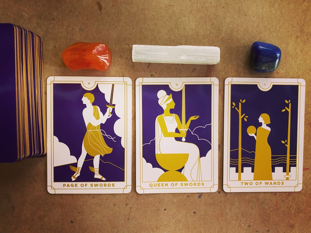 The Queen of swords is flexible, having both the mental clarity and clear boundaries necessary to receive input from other sources and balance judgement.