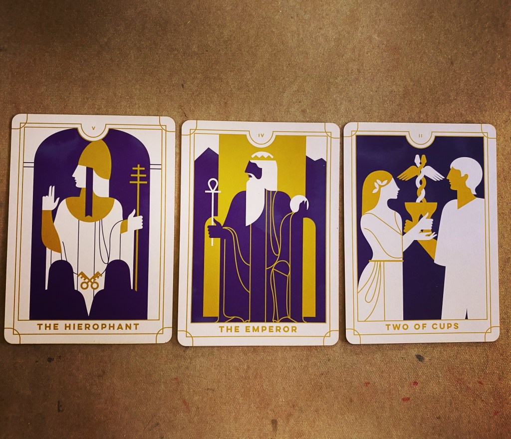The Hierophant- keywords are convention, education, usually represents a mentor or teacher