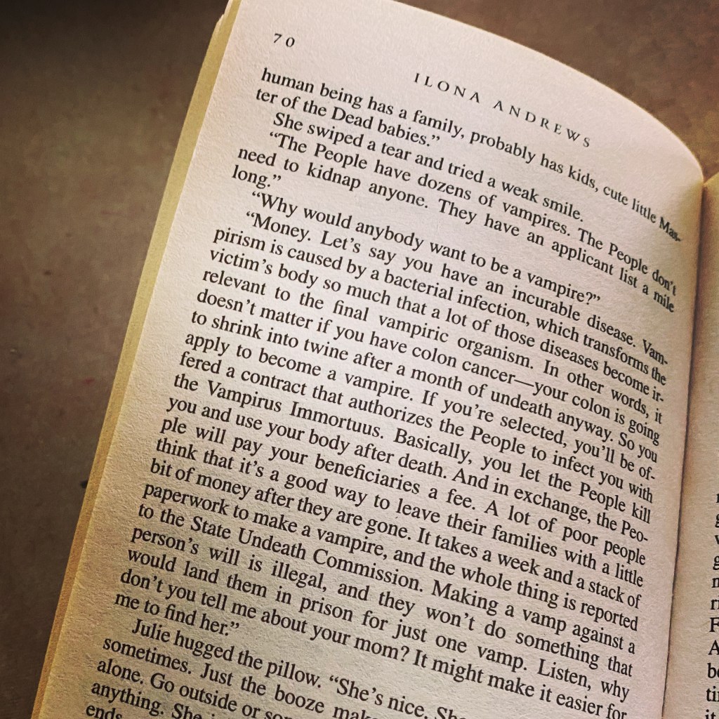 Still going through #ilonaandrews #magicburns. I’m moving maybe a little slower than I’d like, but my brain keeps going to #newproject instead of staying focused on the book in front of me.