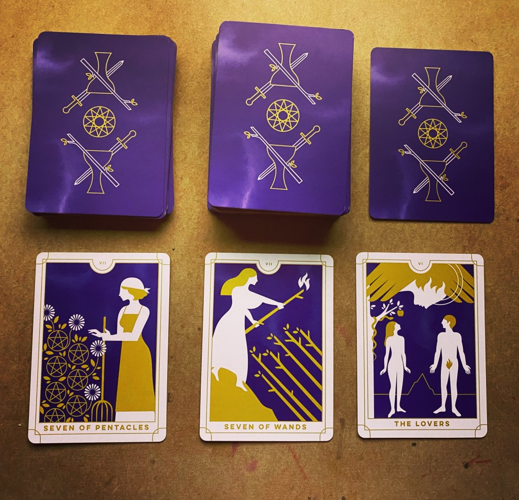 I shuffled, asked for a review on my past, present, and future with the WIP. Cut the deck twice, and pulled the top card from each stack.