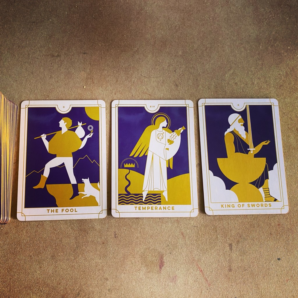 The second card was Temperance, another major arcana. These cards often indicate Big Life Changes, or things that the universe really wants you to pay attention to. This one reminds you stay calm in the face of stress, practice patience, and find balance. So, maybe watch out for that cliff the Fool is standing on.